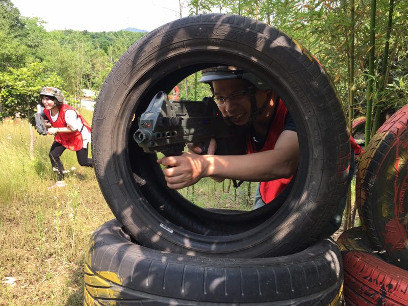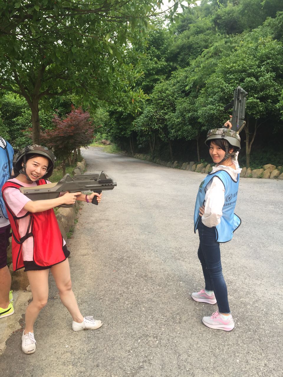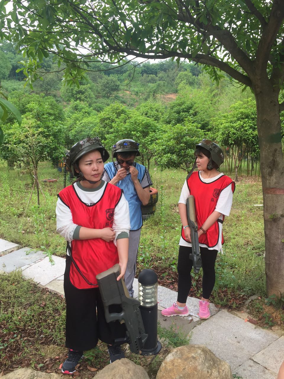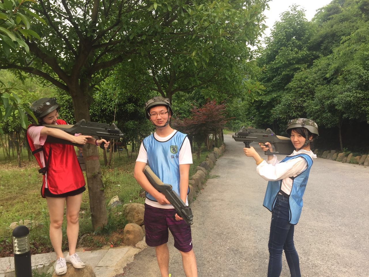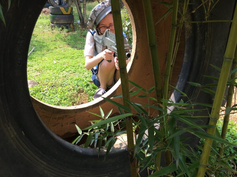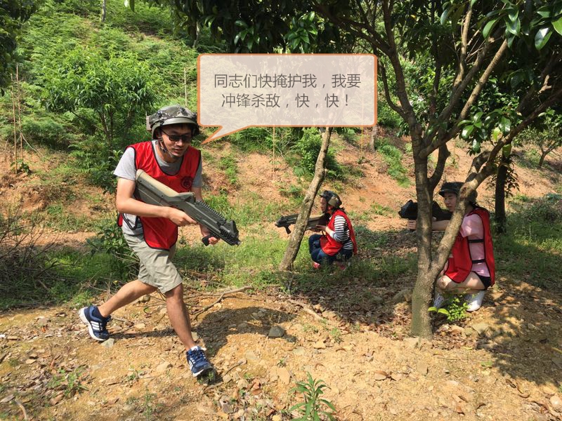 沿着照片上这条路一直走进去走到头就是一个农庄了,小和山真人CS基地就在这边,接下来,一个姓白的教官把我们集合,给我们发战服以及指导我们如何使用激光枪(话说可能天太热了,印象中的迷彩服变成了类似于救生衣一样的)
