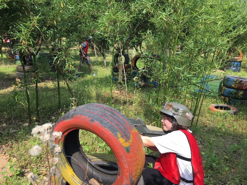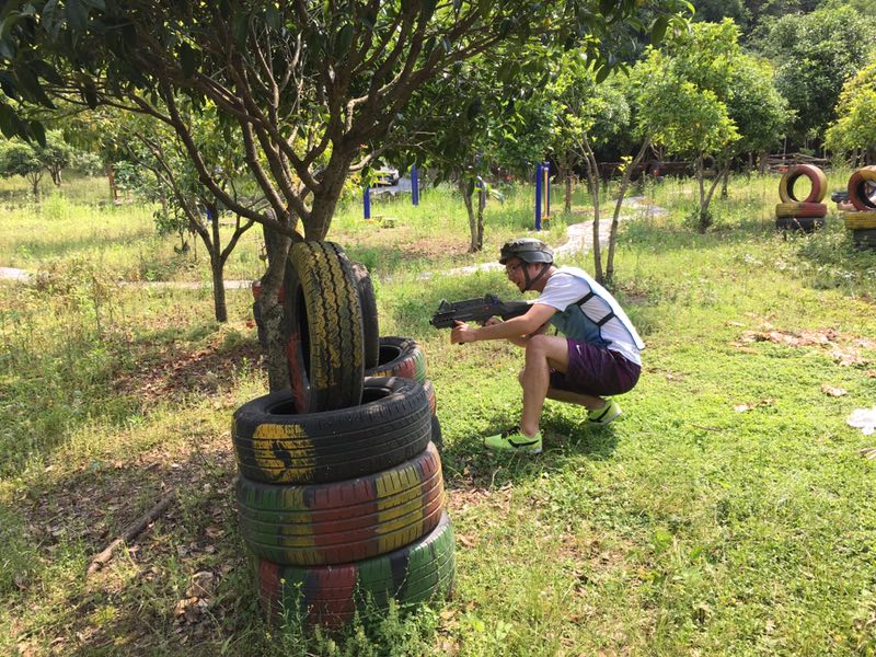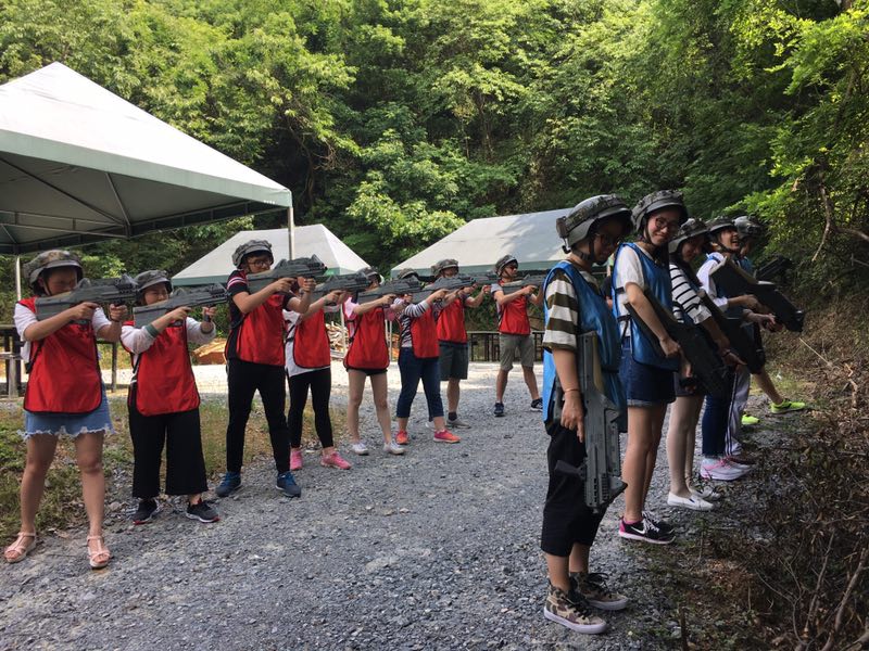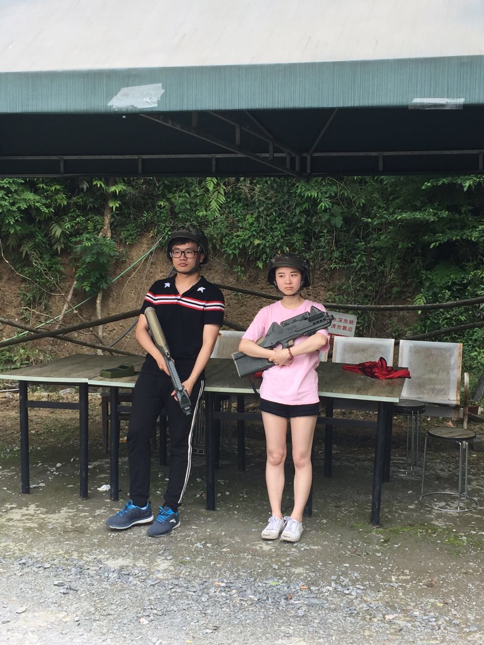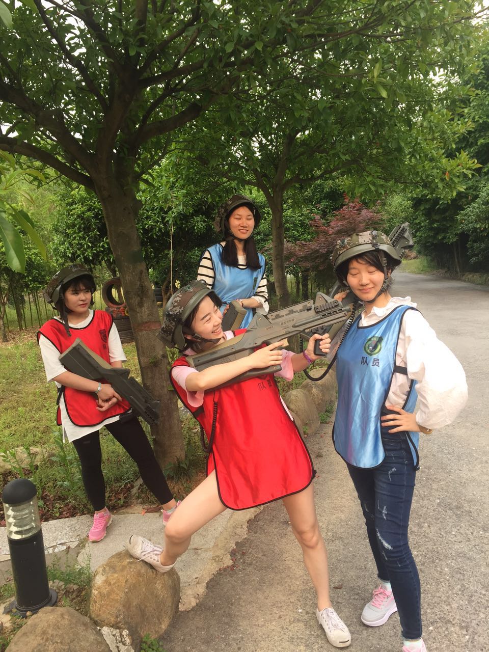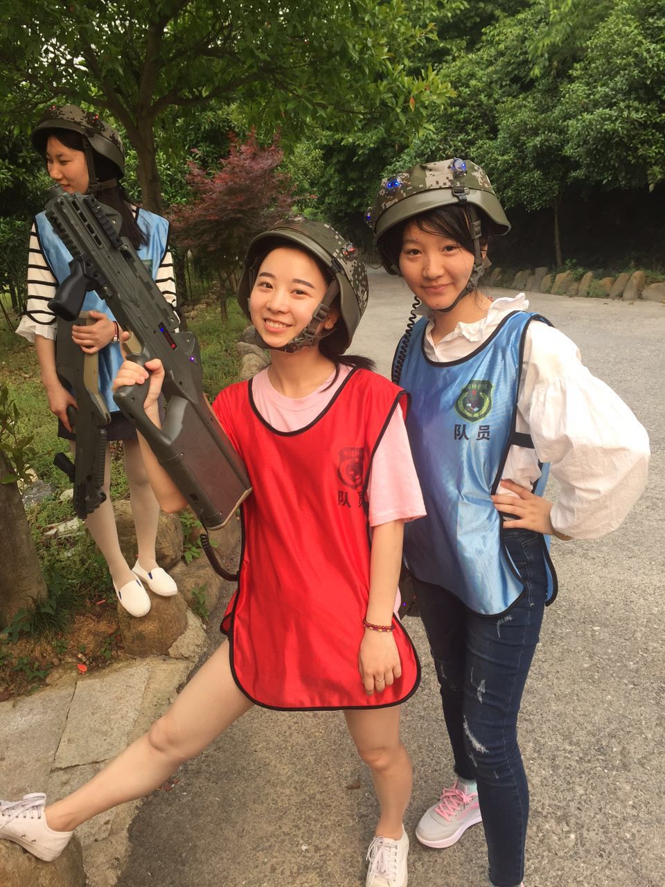 沿着照片上这条路一直走进去走到头就是一个农庄了,小和山真人CS基地就在这边,接下来,一个姓白的教官把我们集合,给我们发战服以及指导我们如何使用激光枪(话说可能天太热了,印象中的迷彩服变成了类似于救生衣一样的)