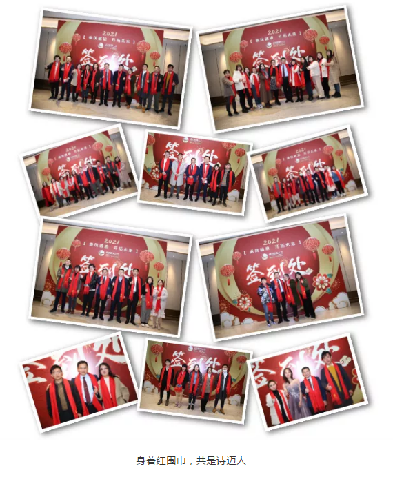 诗迈的精英们围着喜庆的红围巾进入年会的会场,俊男靓女齐聚一堂,彰显诗迈风采。
