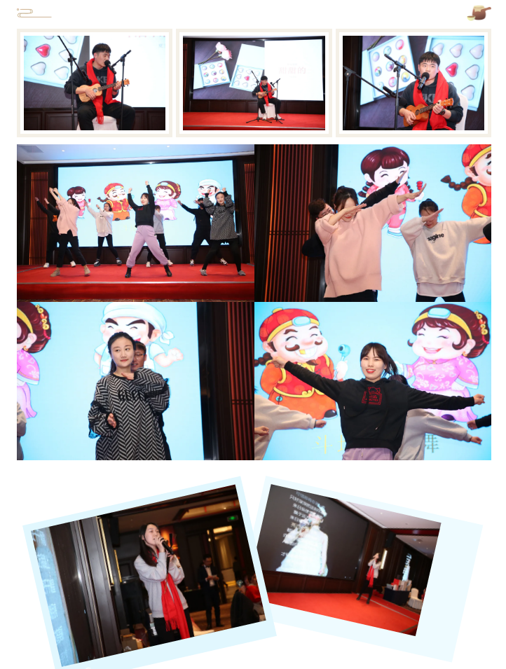 年会不仅给大家带来了欢声笑语,也让同事之间关系更加密切。公司领导与员工亲情互动、大家倾情演绎,让掌声、欢呼声一直在现场荡漾。