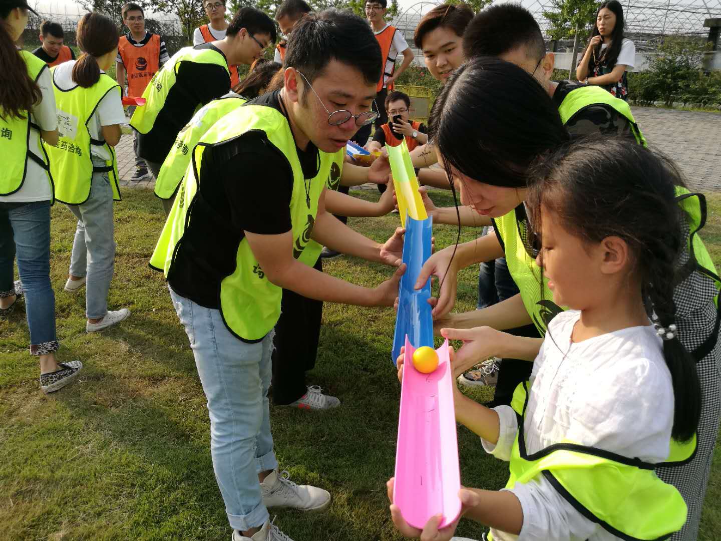 第三个游戏“珠行万里”,游戏规则很简单,通过不断的接力让小球不断的前进,直至终点,但是做起来非常的难,我们的青队失败了无数次,一次次的从头再来,最终在大家的加油声中到达了终点。这颗小小的球正如我们每个人自己一样,当你急功近利的时候,你会摔的很疼。如果有人在这个时候让你停滞一下,反而会更有利于完成目标。