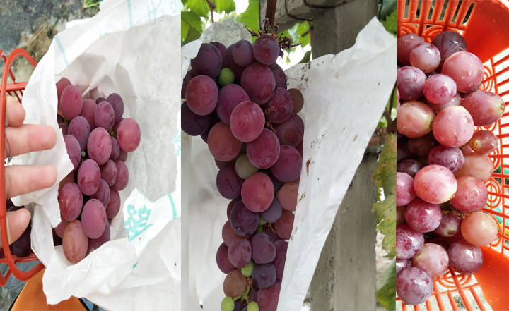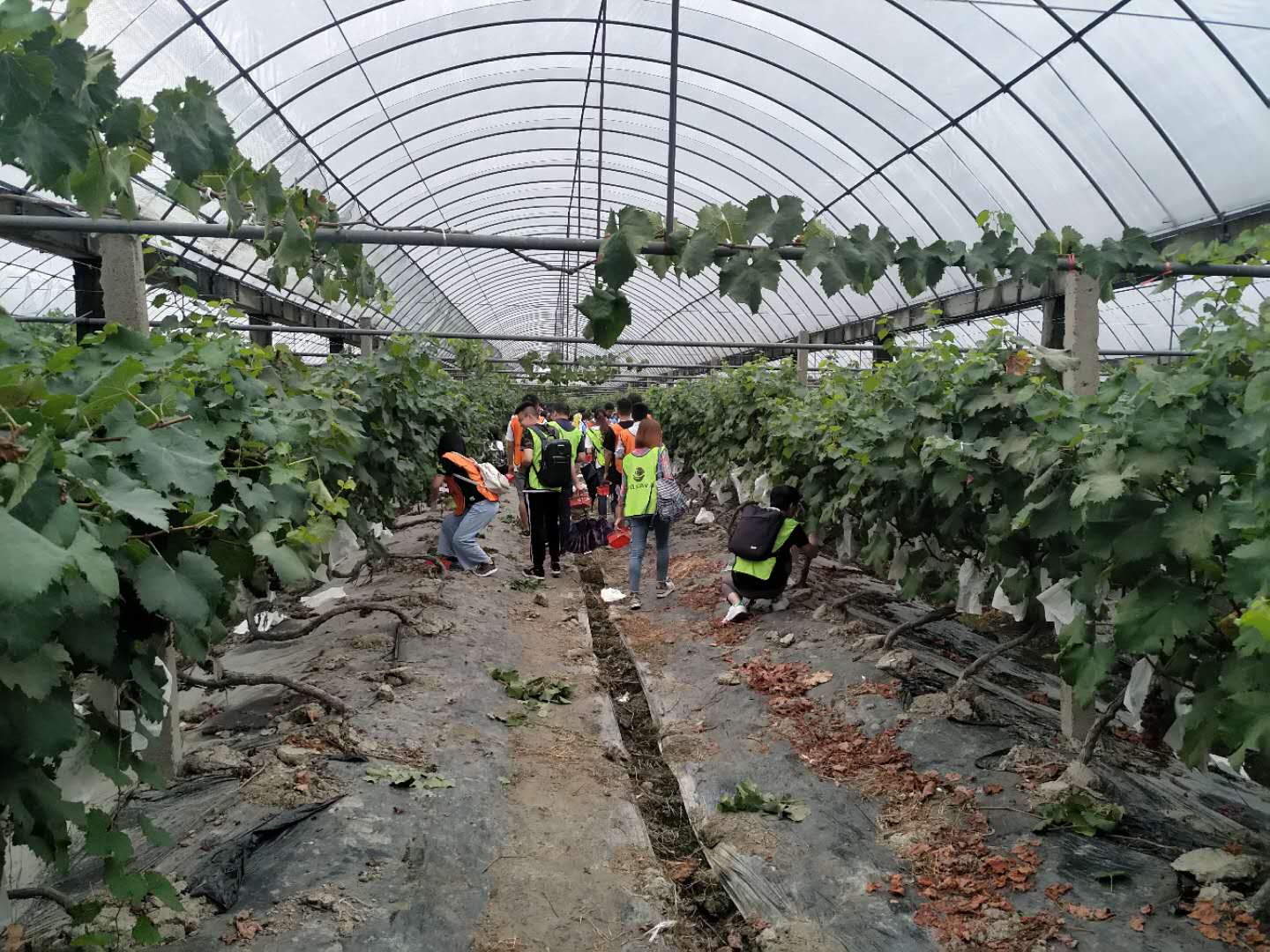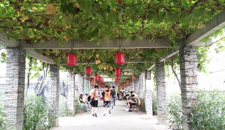 曲径通幽处,便是我们第一站的活动目的地,葡萄采摘园。古语有云:金谷风露凉,绿珠醉初醒。珠帐夜不收,月明堕清影。葡萄园里的风和露都凉了下来,葡萄也从酒醉中刚刚醒来。据园主人说,他们家的葡萄非常的甜,吃多了可能会醉,也不知是真是假,反正小编我吃了两大串还意犹未尽。