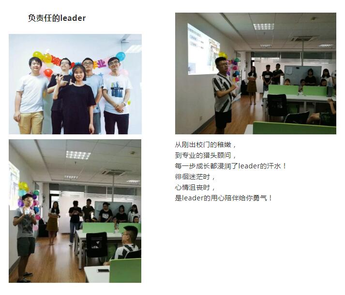 Ø 晋升机制透明公开:寻访员——顾问助理——猎头顾问(30%-40%的业绩提成)——团队负责人——分公司负责人(30%以上股份分红)