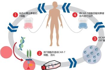 通俗来说,CAR-T细胞治疗产品,是通过基因修饰,激活人体免疫系统中T细胞的识别能力,让T细胞准确发现癌细胞,启动自身免疫来“清除”癌细胞。