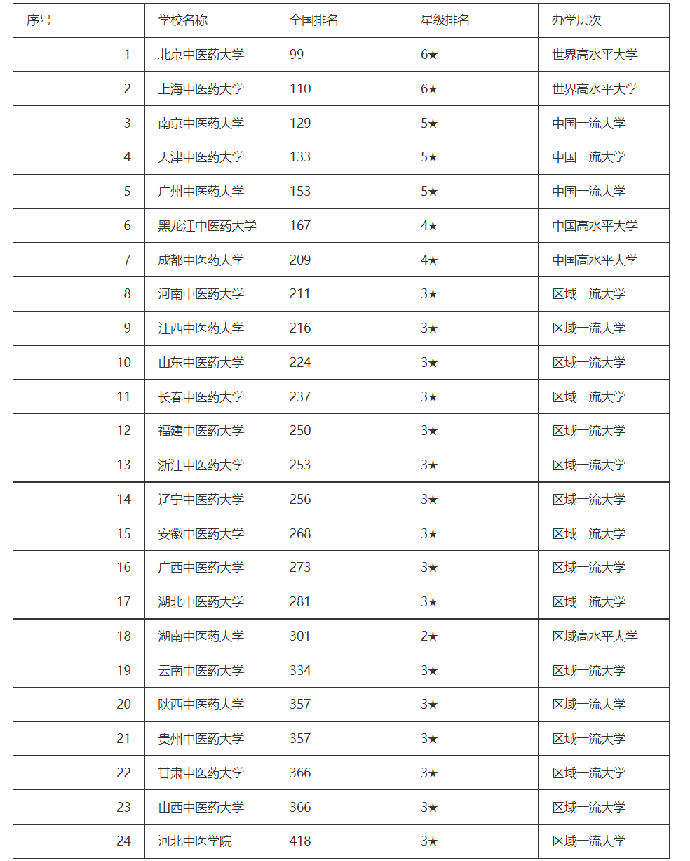 中医药大学排名全国最新排名