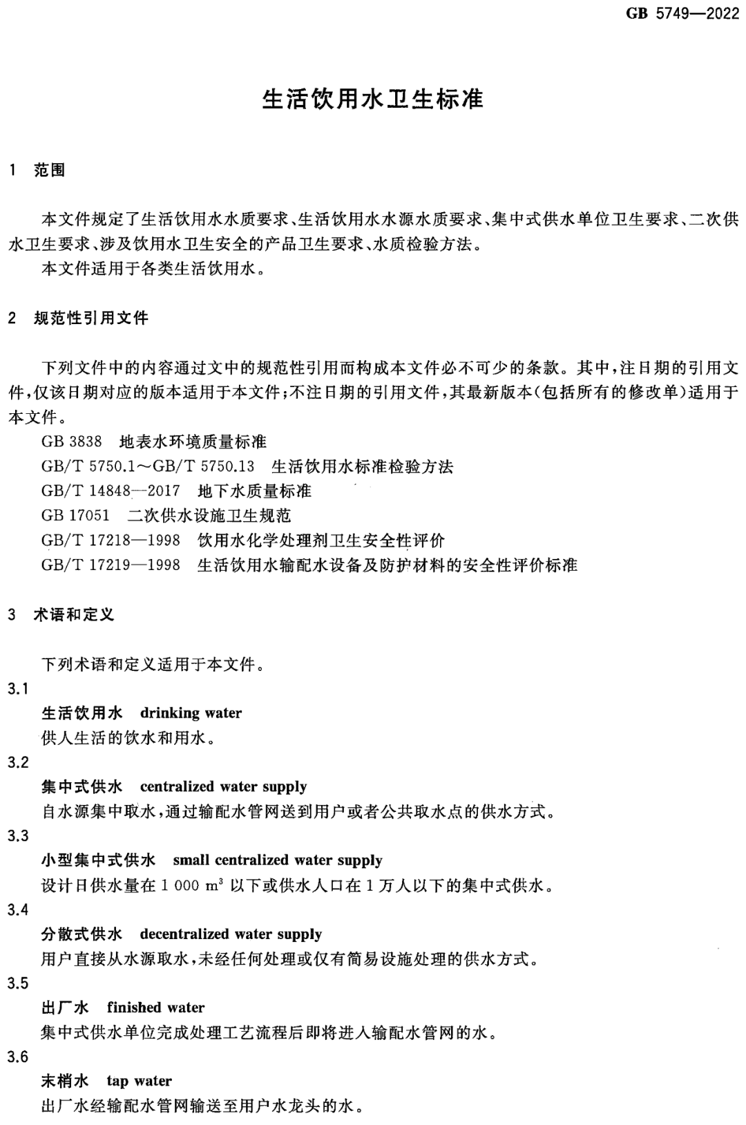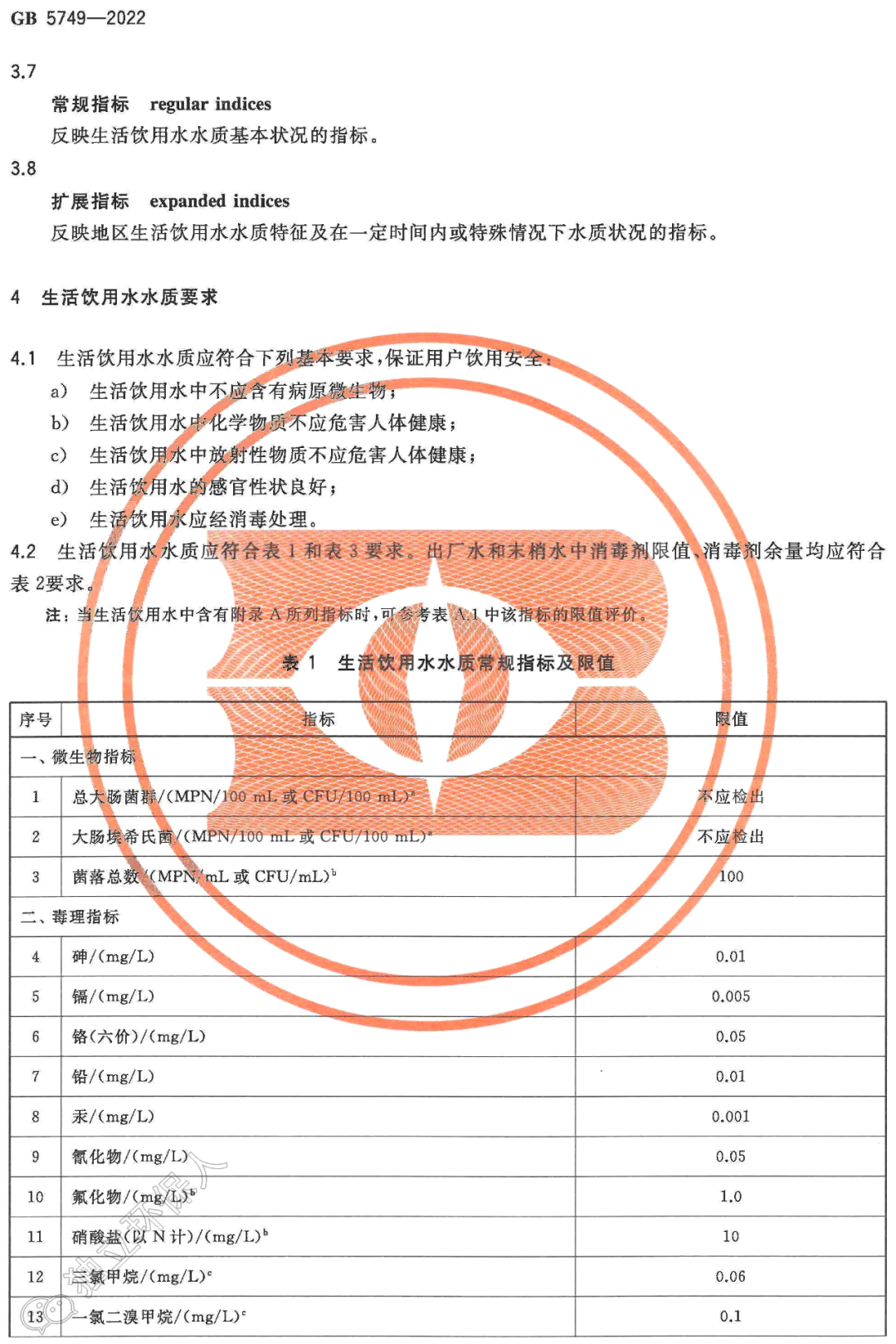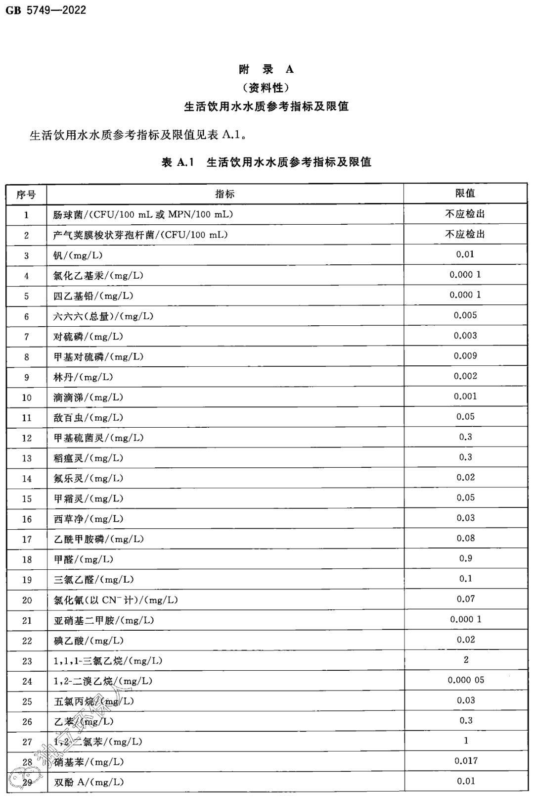 gb5749-2022生活饮用水卫生标准