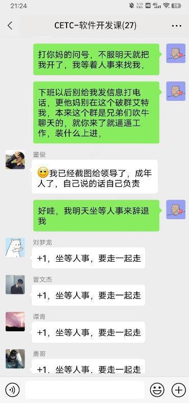 4月4日,疑似“中国电科清明节强制加班怒怼领导”的相关聊天记录在网络上流传。