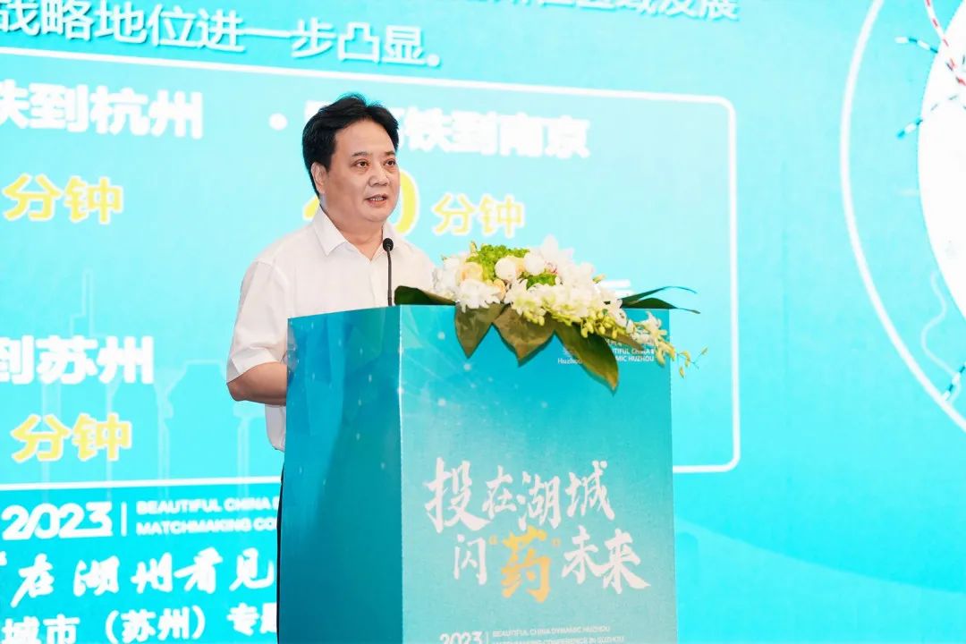 湖州市市场监督局党委书记、局长娄显杰从产业基础、产业配套、营商环境等方面全方位推介湖州,让与会者可以从总体上了解湖州的投资环境。