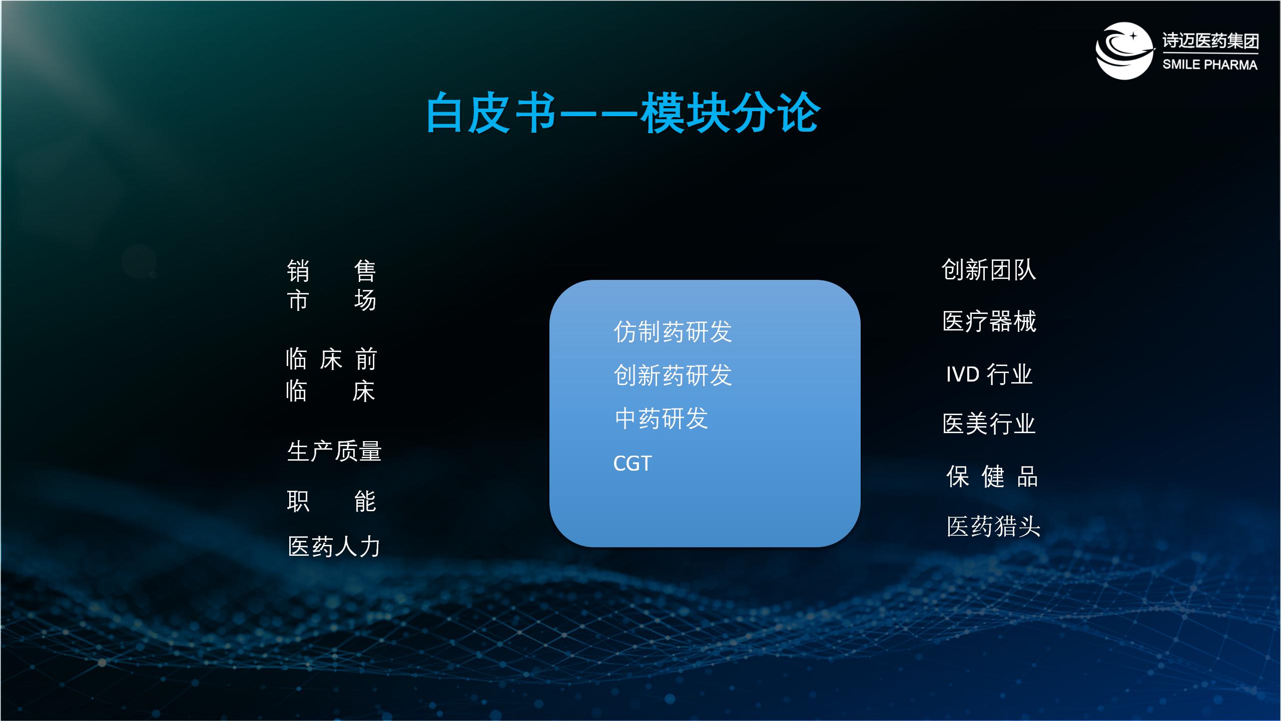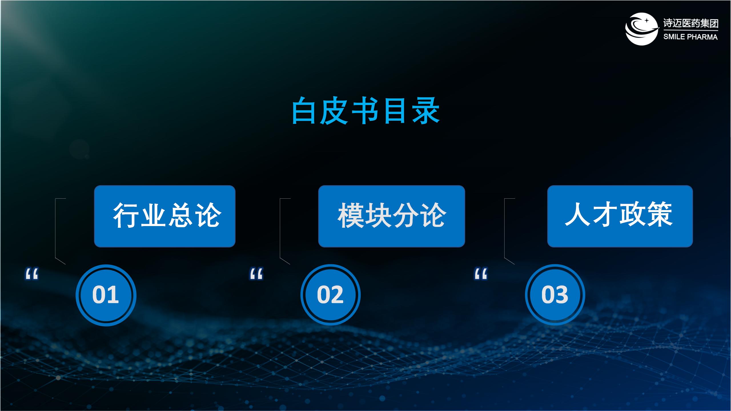 为深入了解中国医药人才特征和发展趋势,有效推动人才引领产业高质量发展,诗迈医药集团基于诗迈医药人才大数据和诗迈数智医药产业大数据,对生物医药产业政策、产业格局、人才结构、人才分布、人才需求、薪酬待遇、实操建议、未来展望、引才政策、产业发展策略等进行了深入分析研究,在2020版白皮书的基础上,联合企业、高校、科研机构、产业园等共同努力,编制完成《2023中国医药人才发展白皮书》,供医药行业创业者、管理者、投资者、HR、高校、政府部门、产业园、行业协会决策参考,共促产业发展。