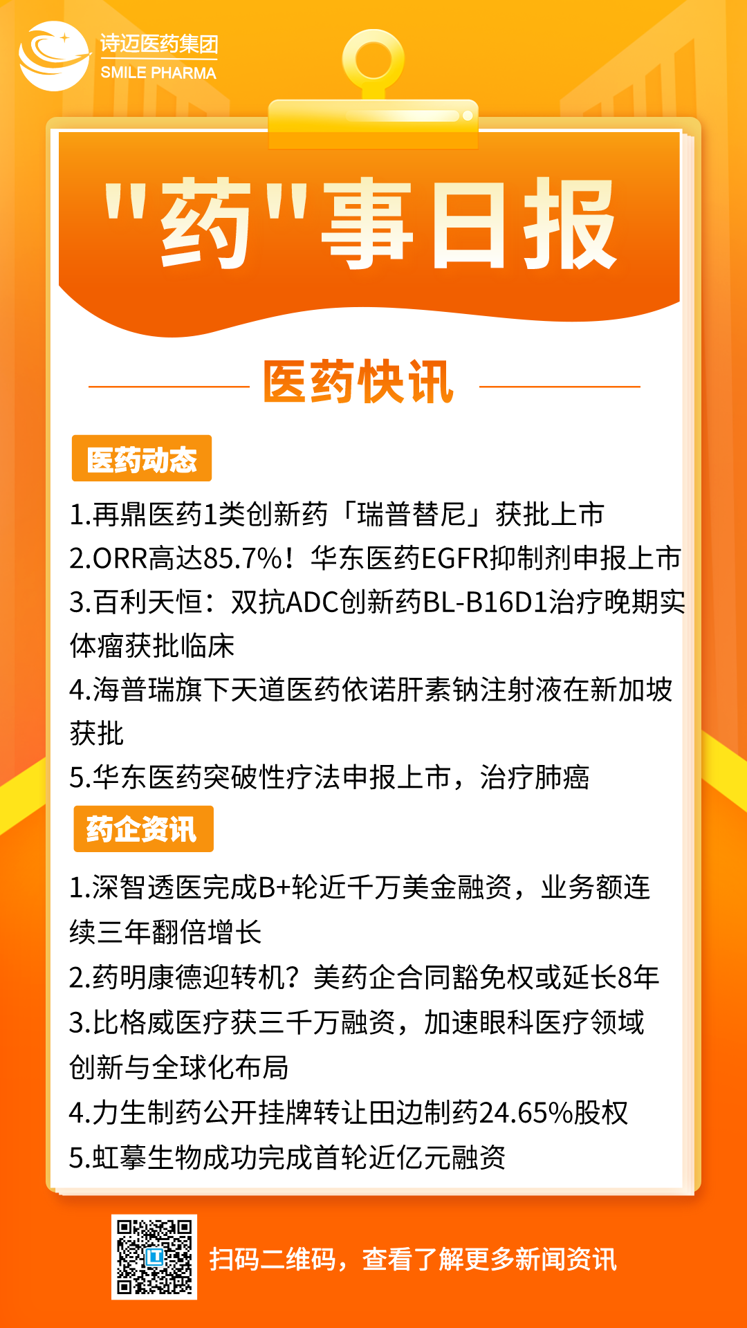 医药快讯丨华东医药突破性疗法申报上市,治疗肺癌;药明康德迎转机?美药企合同豁免权或延长8年-专业医药猎头-医药人才网杭州诗迈医药科技有限公司