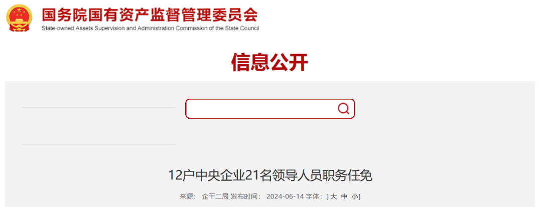 01国药集团董事长变更通用技术集团、华润医药商业总经理确定6月14日,国务院国有资产监督管理委员会官网公布了12户中央企业21名领导人员职务任免。