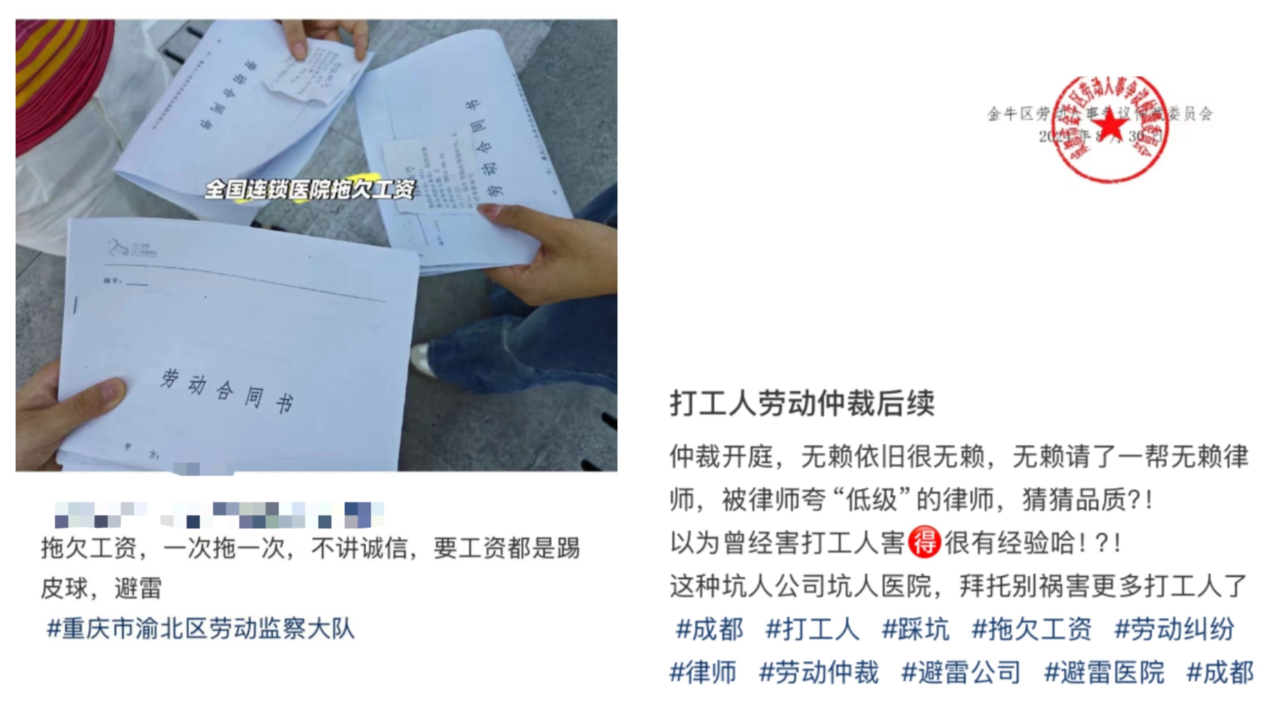 做一份几个月甚至半年不领薪水的工作,光靠积蓄养家糊口并非长久之计。部分医护人员走上了维权的道路,将工作过的医院一纸诉状告上法庭。评论区不乏同行询问维权结果,po主称目前尚在等待仲裁文书。